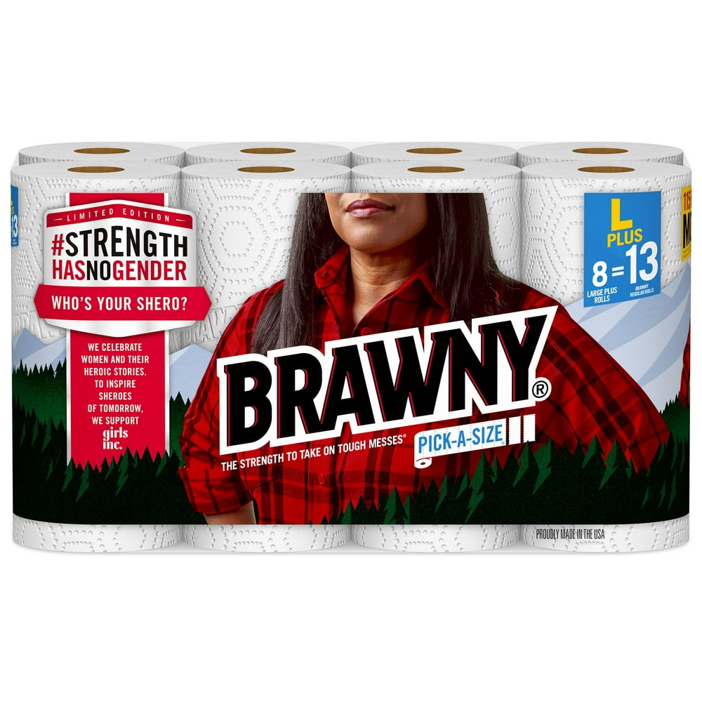 Brawny Pick-a-size Giant White Paper Towels - Shop Paper ... from images.heb.com But engineered to handle the tough messes life can dish out. Other paper towels we tested. The brawny brand has been an american icon of just bought new 6 pack, and paper towel is much thinner and stiffer.